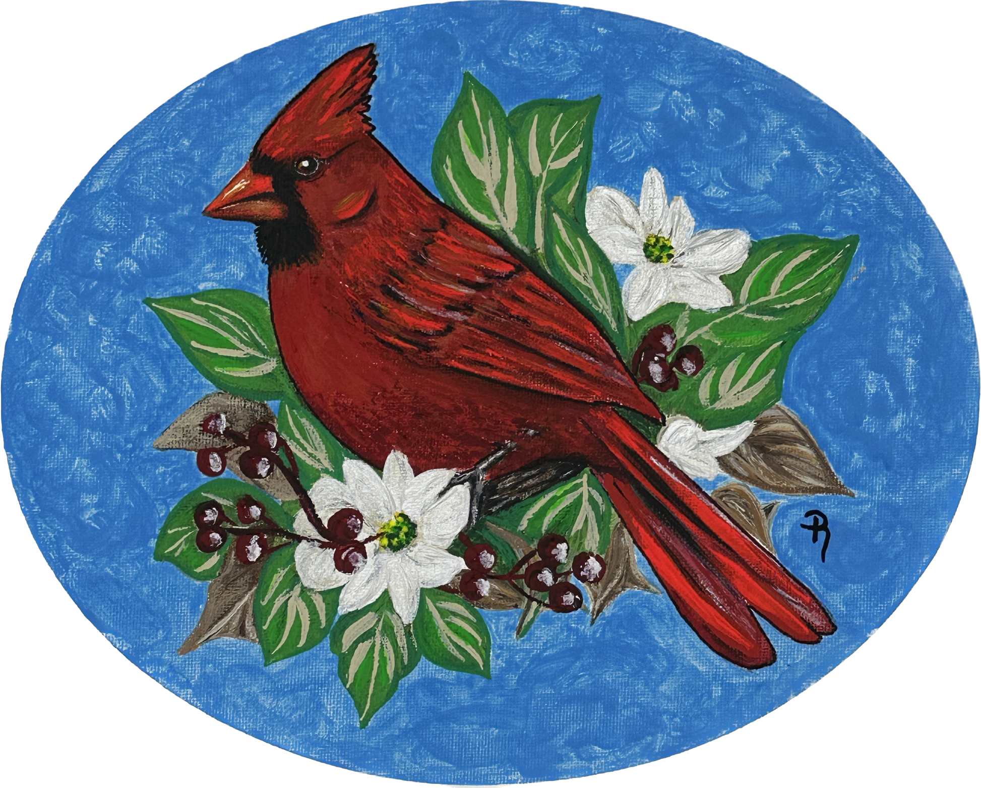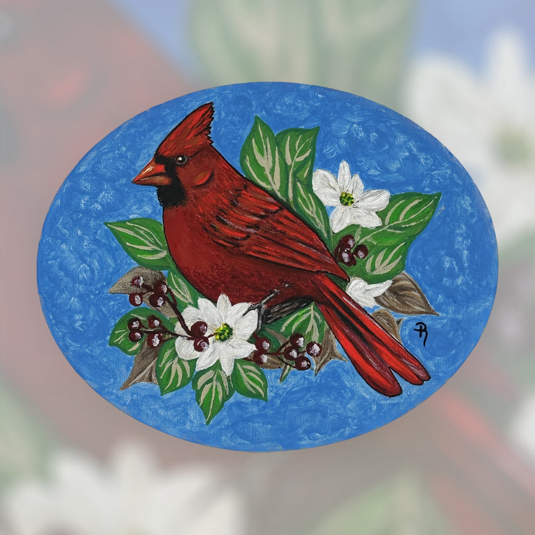 Blue Canopy Cardinal Acrylic Painting