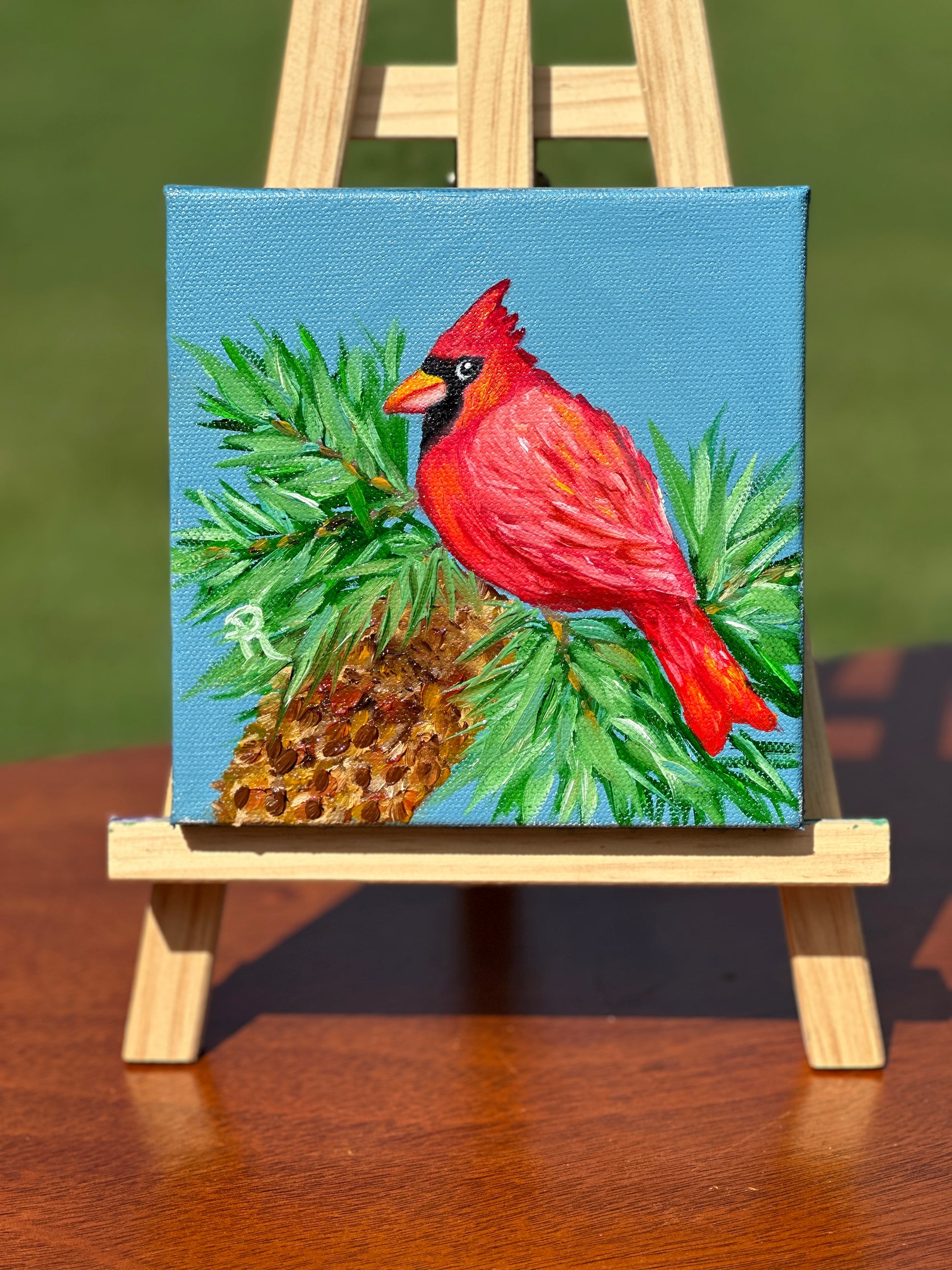 This small painting makes a wonderful holiday gift idea for a mom, sister or friend or for anyone who loves birds or Cardinals!