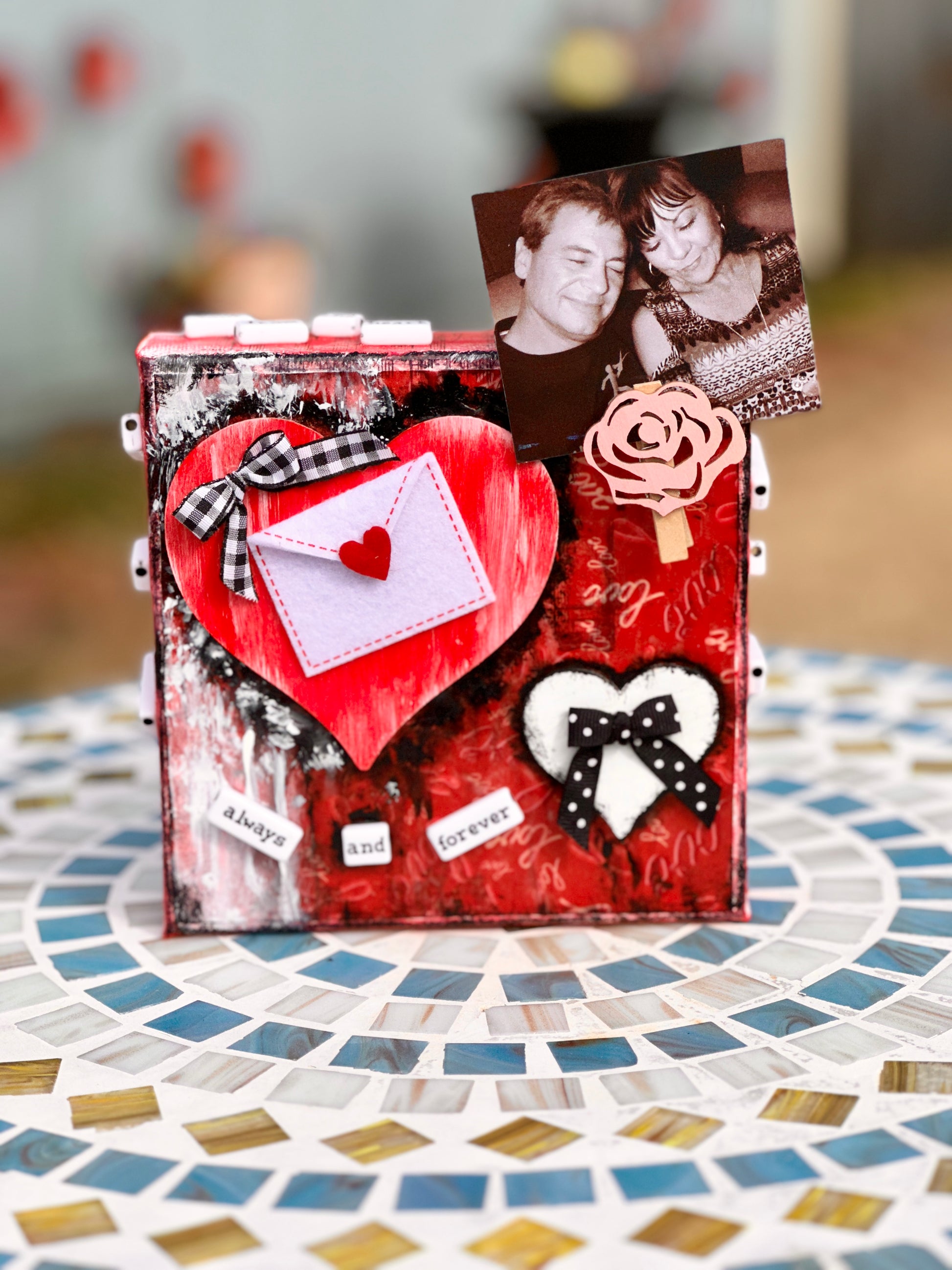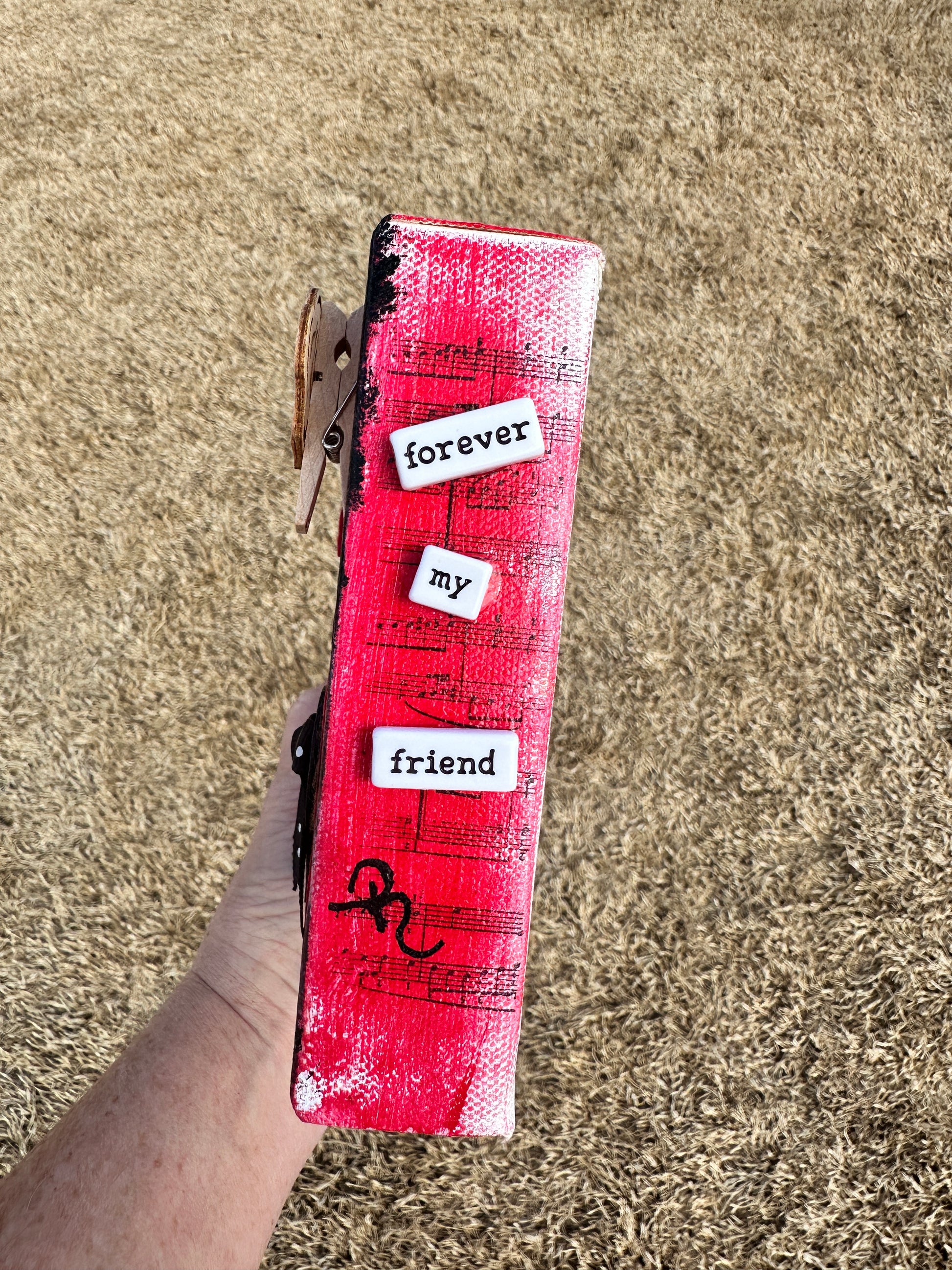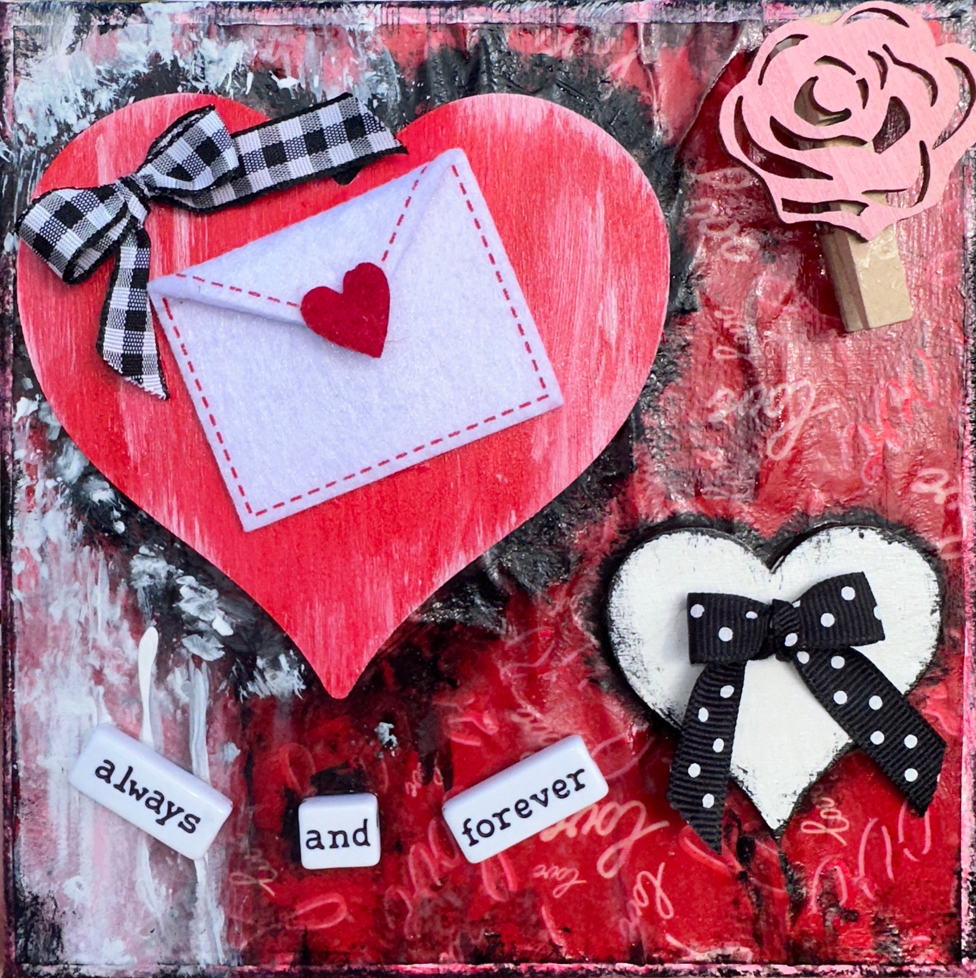 Love is in the air with this playful Forever Mixed Media Painting! Featuring hearts and special love messages, this painting is the perfect gift for your special someone. It even comes with a wood pin to display a favorite photo - talk about a one-of-a-kind present!