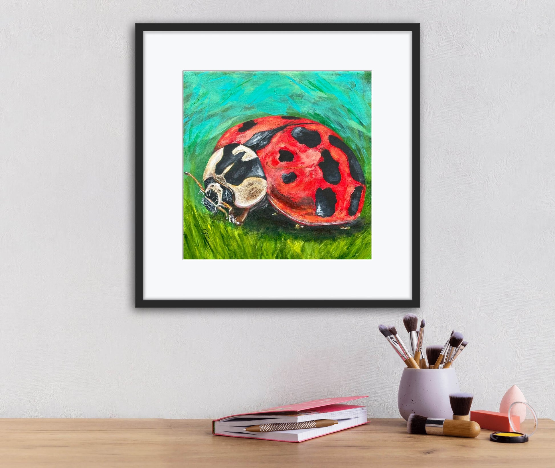 Capture the beauty of nature in your home with this lovely Lively Ladybug Acrylic Painting! Featuring a vibrant ladybug on a rich green background, it's sure to bring a unique and captivating touch to any room. For a timeless look that's sure to be the envy of all who visit, choose this original stunning hand painted work of art for your home.