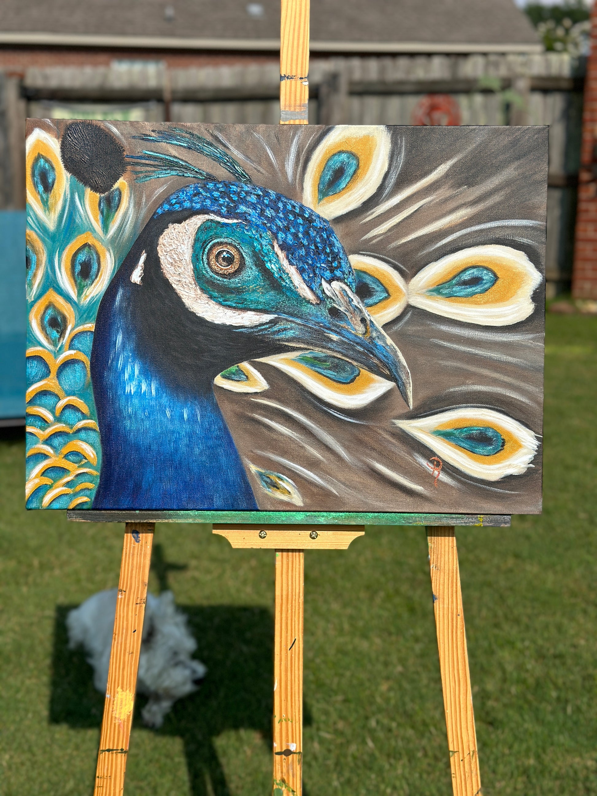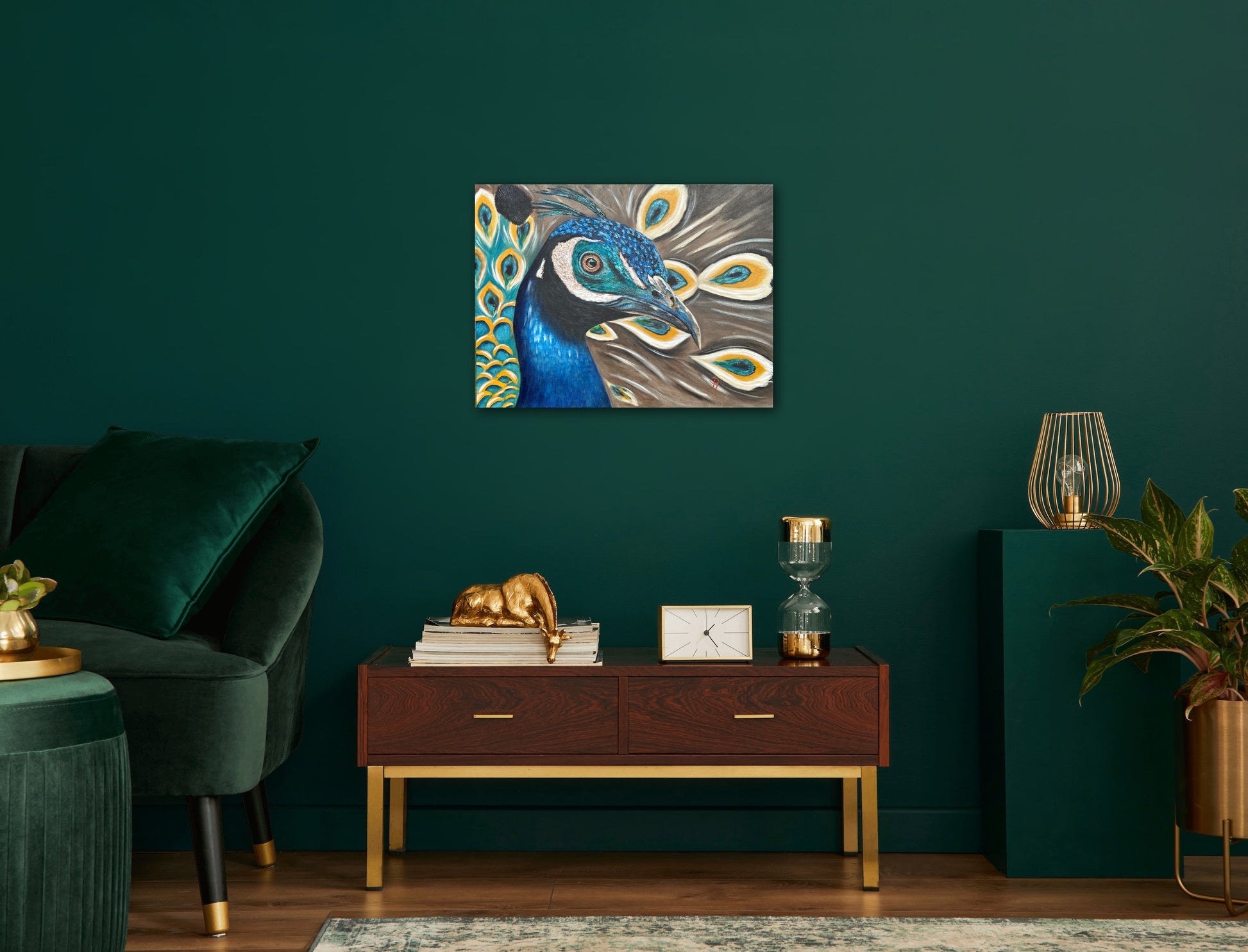This Majestic Peacock Acrylic Painting, crafted with vibrant acrylics, will bring a touch of grace and beauty to your walls. The depth and dynamic of the colors will transport you to a new realm of wonder, while the intricate details of the subject will put a piece of art connoisseur's eye to shame. Make a statement with this majestic piece and embrace nature in all its glory.