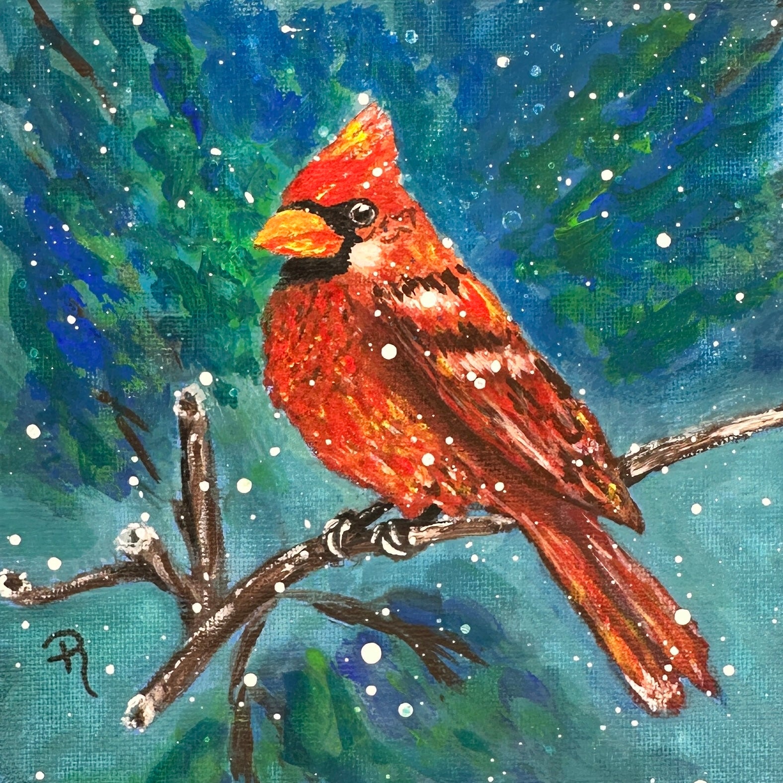 Perk up your day with this whimsical watercolor painting! Featuring a curious cardinal nestled on a speckled branch with dreamy trees and sky in the background, it's sure to bring beautiful color and serene vibes to any room. Who knew cardinals could be such show stoppers?! 🐦