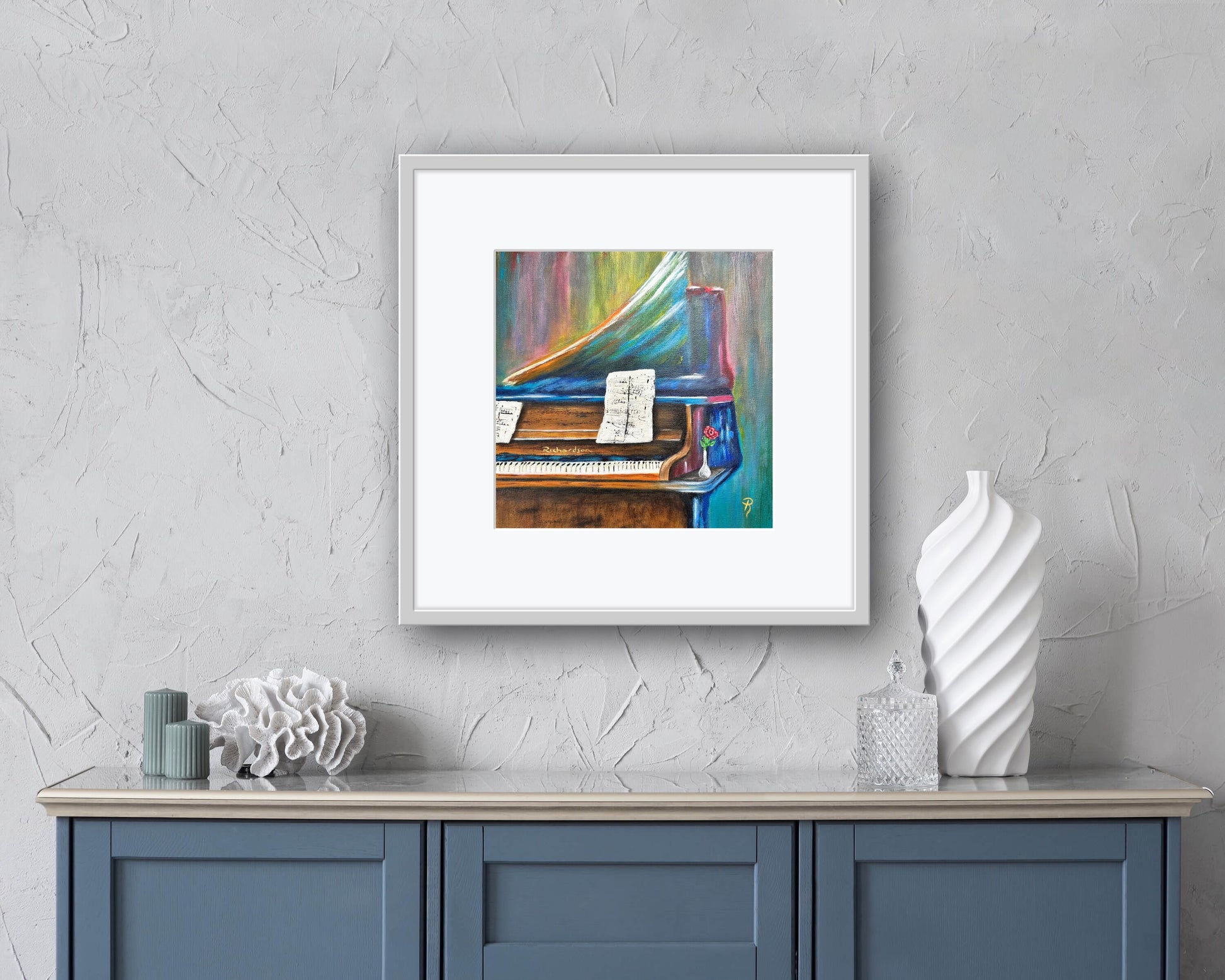 Let the enchanting notes of this whimsical Piano Prism Acrylic Painting serenade you! Featuring a grand piano with a rose bud in a vase, sheet music, and a colorful background, this one-of-a-kind piece is sure to take any room's décor up a few octaves. Perfect for the passionate musician (or wannabe!).