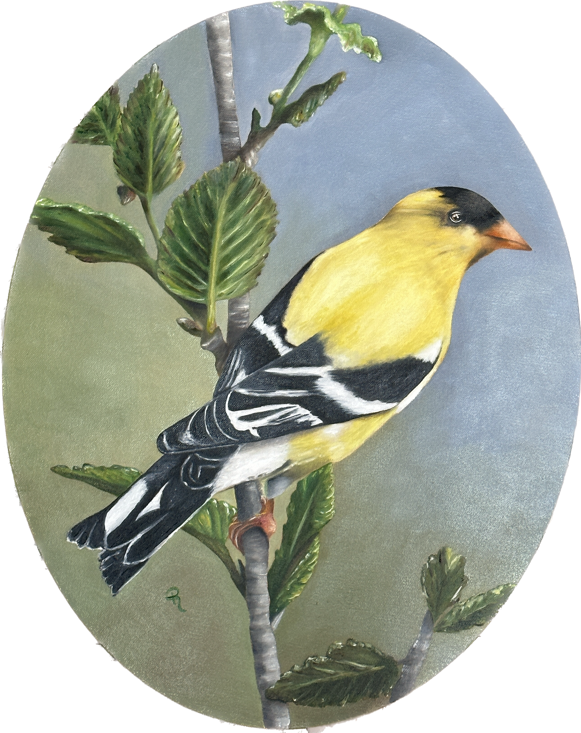- Oil on stretched canvas: 16" x 20" Oval