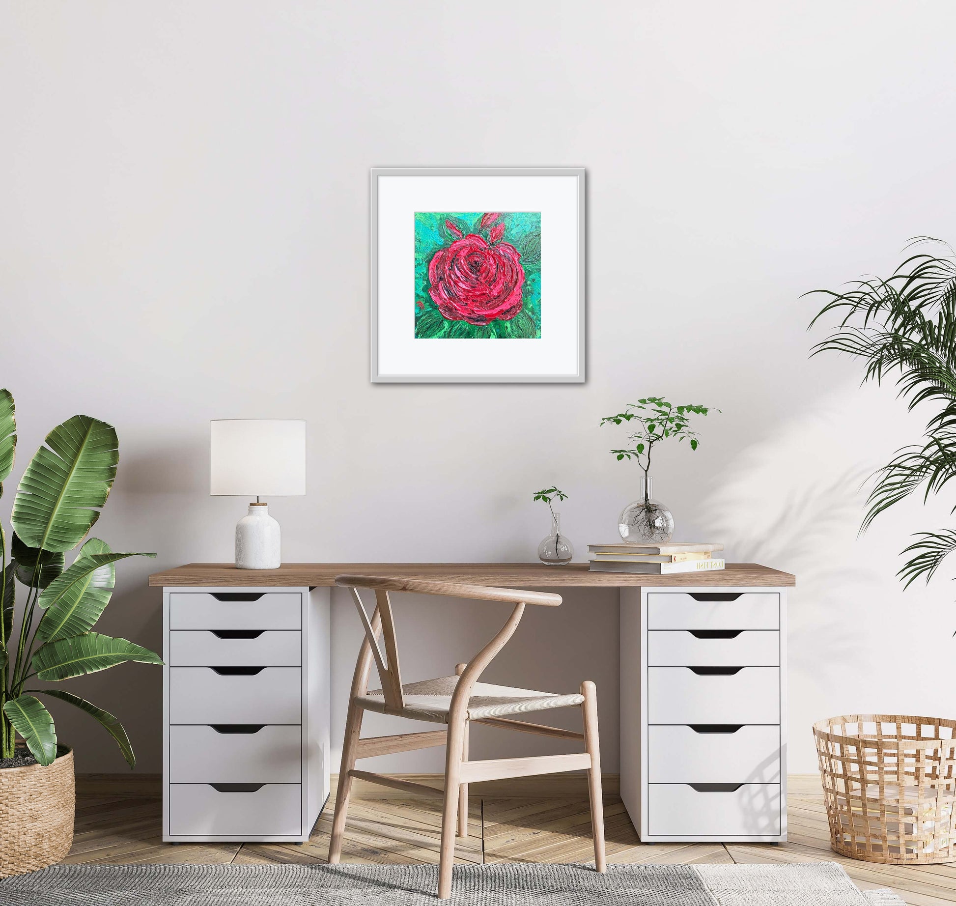 If you love flower paintings or even roses then you'll adore this single full bloom red rose acrylic painting as the perfect addition to your home or office.