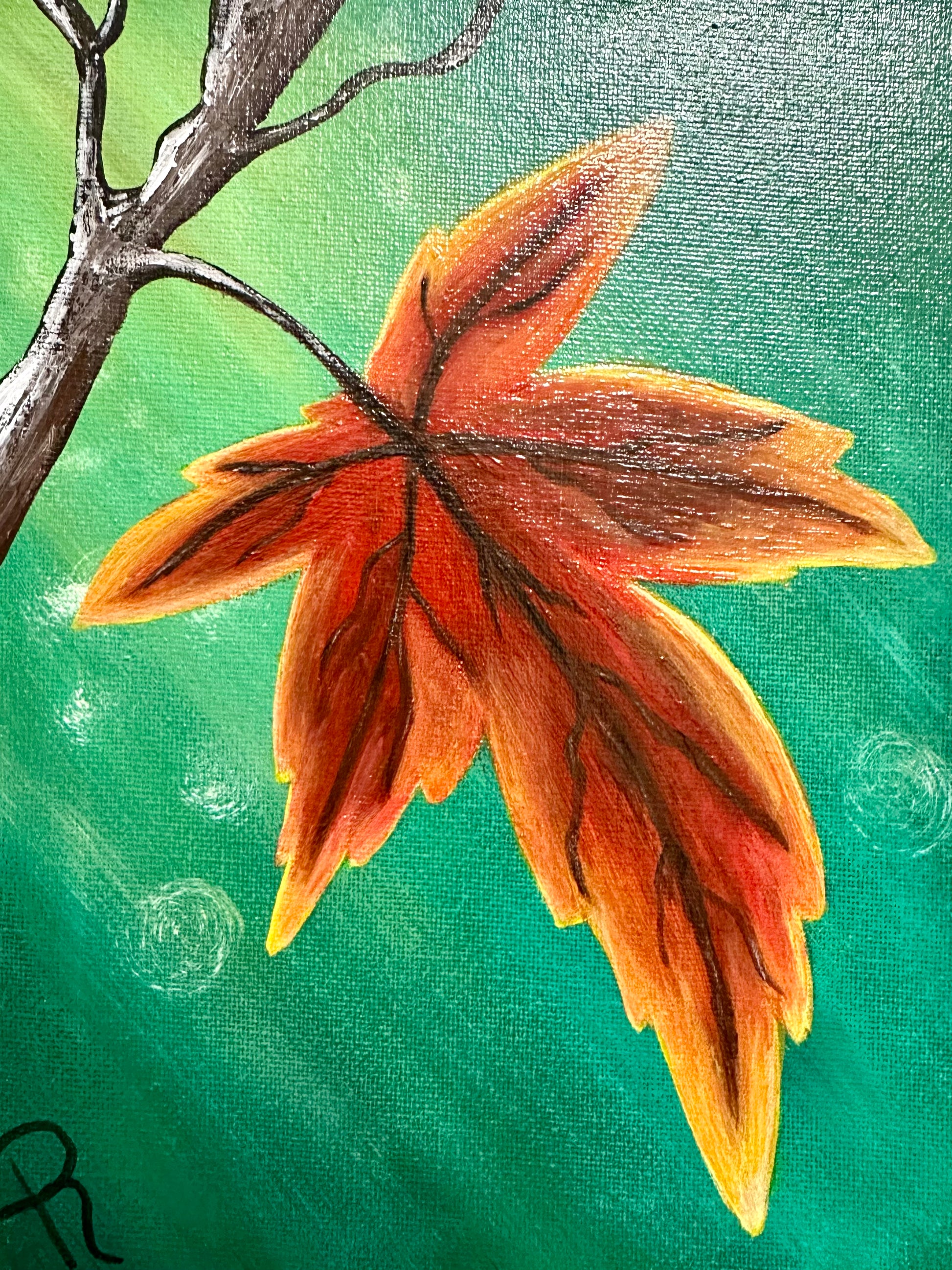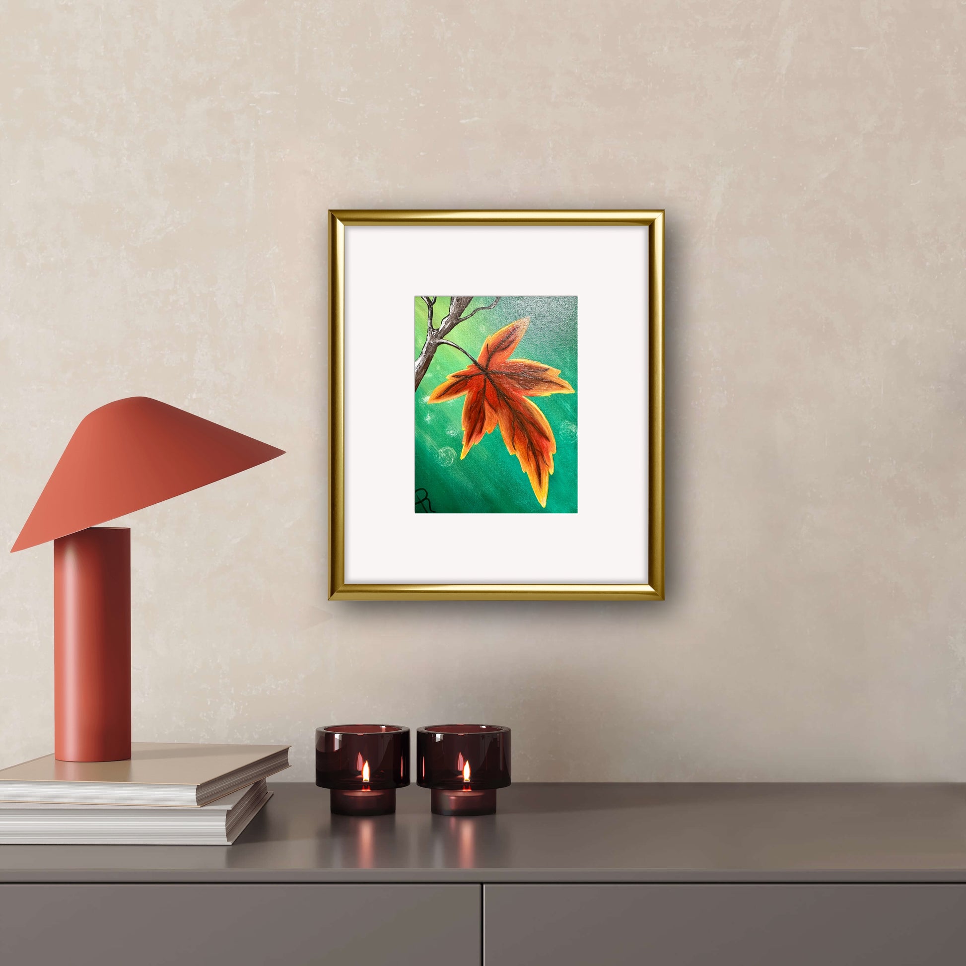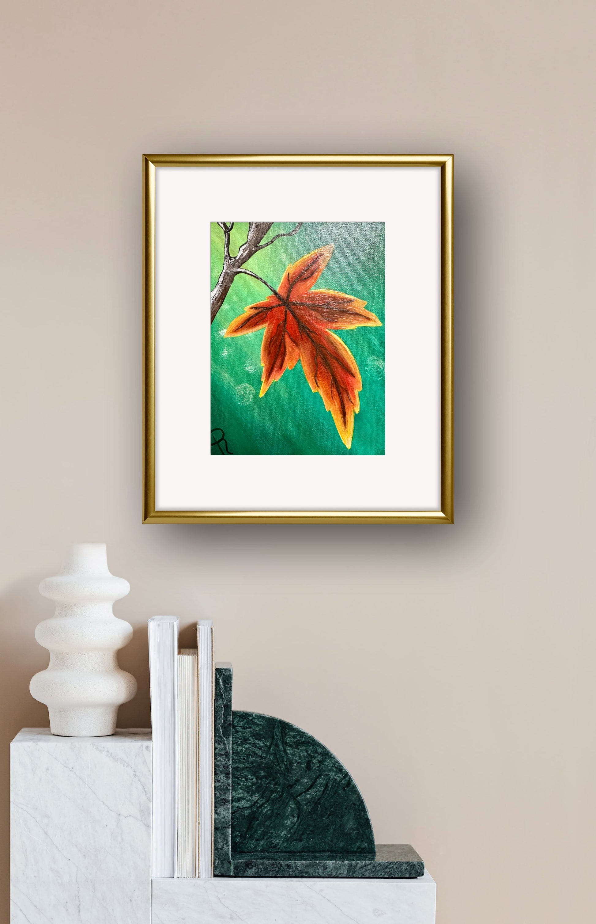 This beautiful Single Fall Leaf Acrylic Painting captures a stunning autumn scene with a single hanging orange leaf in exquisite detail. Carefully rendered with acrylic paints, the vibrant colors of this painting will be sure to capture attention and liven any living space. A perfect addition for any autumn themed décor.