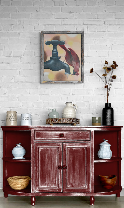 Cardinals with their beautiful red color are usually spotted easily in winter especially around white snow. But did you know Cardinals are birds that don't migrate? They stay in their territory all year-round. We have lots of cardinals in our backyard and they love to flock to our bird feeders. We often see the bright colored males and the females as many as 6 or more at a time. Did you know Cardinals mate for life? They work together to build their nest and raise their young. However they don't use the same nest twice. We put seed out for our birds along with plenty of water in the bird bath. But this cute whimsical Cardinal is either extra thirsty or very curious about the water dripping down the faucet. The Thirsty Cardinal painting makes the perfect gift for the bird lover for their birthday or as a holiday gift. Maybe you're looking for that special bird art for yourself. This sweet Cardinal canvas painting will surely be a conversation piece in your home.